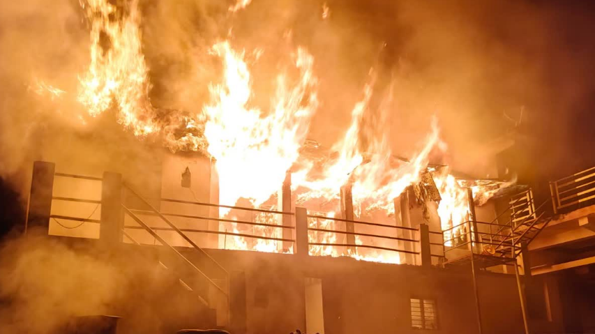 उत्तरकाशी: डुंडा तहसील के अंतर्गत जुणगा गांव के डांगडा तोक में रविवार देर रात एक बड़े आवासीय भवन में भीषण आग लगने से अफरा-तफरी मच गई. आग इतनी तेजी से फैली कि देखते ही देखते पूरा मकान उसकी चपेट में आ गया. इस दर्दनाक घटना में दो लोग घायल हो गए, जिन्हें तत्काल उपचार के लिए जिला अस्पताल उत्तरकाशी पहुंचाया गया. सूचना मिलते ही ब्रह्मखाल चौकी की पुलिस, फायर सर्विस और एसडीआरएफ की टीम मौके पर पहुंची, लेकिन तब तक आग विकराल रूप ले चुकी थी और मकान पूरी तरह जल चुका था.